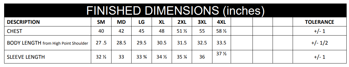 S-4XL (upcharges apply for 2XL-4XL)